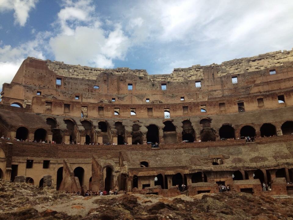 พูดถึงโรมก็ต้องนึกถึงโคลีเซียม ปีๆนึงมีคนไปเยี่ยมชมมากกว่า 10 ล้านคน คิดดูว่ามหาศาลขนาดไหน จะโพสท่าถ่ายรูปทั้งที เดี๋ยวมีคนเดินตัดหน้าบ้าง มายืนโพสถ่ายอยู่ข้างหลังบ้าง จะโพสจัดเต็มก็แอบอายกรุ๊ปทัวร์ข้างๆ โอ้ย อยากจะได้รูปสวยๆซักใบทำไมมันยากเย็นอะไรอย่างนี้?! จ่ายค่าตั๋วมาแพง แต่งตัวจัดเต็มมาทั้งทีพลาดได้ไง เพราะงั้น ตามมาทางนี้ค่ะ จุดถ่ายรูปที่รับรองว่าจะไม่ผิดหวังกับวิวโคลีเซียมเน้นๆเป็นฉากหลัง จงมองหาเนินตรงใกล้ๆฝั่งประตูชัยคอนสแตนติน (The Arch of Constantine) นั่นแหละค่ะ จะมีเนินเตี้ยๆที่มีตอไม้อันนึงอยู่บนนั้น ปีนขึ้นไปค่ะอย่าลังเล อย่าลืมคิดท่าโพสเตรียมไว้ในใจ ตรงนั้นมันติดถนนใหญ่จะมีมวลมหาประชาชนมองมาที่เรานิดนึง ฉะนั้นเราต้องว่องค่ะ ขึ้นตอปุ๊บ! โพสปั๊บ! รัวชัตเตอร์! ตอนลงจากตอ แนะนำให้ทำเนียนเดินเอ้อระเหยมองบนมองล่างอีกนิด ก็จะได้โพสสวยแบบธรรมชาติอีกช็อตค่ะ