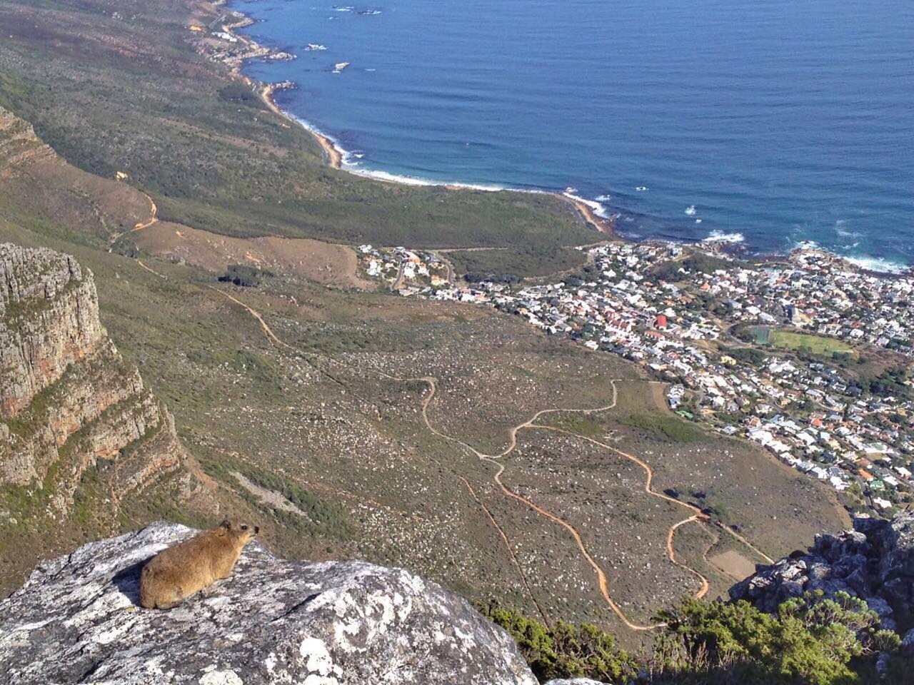 วันถัดมา เราควบรถขึ้นเขาแต่เช้าเพื่อที่จะไปขึ้นเคเบิ้ลคาร์ต่อไปยังจุดชมวิวบนยอดเขา Table Mountain ซึ่งเป็นจุดแลนด์มาร์คของเมือง การันตีความพิเศษด้วยตำแหน่ง New 7 Wonders of Nature หรือ หนึ่งในเจ็ดสิ่งมหัศจรรย์ทางธรรมชาติแห่งใหม่ของโลก ตัวภูเขาเองนั้นไม่ได้สูงนัก (จุดสูงสุดอยู่ที่ 1,086 เมตร) แต่ความน่าสนใจของภูเขาแห่งนี้อยู่ที่ยอดเขาที่มีลักษณะเป็นพื้นโล่งแบนราบเหมือนกับโต๊ะ วันดีคืนดีมีเมฆหนามาปกคลุมบนยอดเขา ชาวเมืองผู้มีวิสัยทัศน์กว้างไกลก็ตั้งชื่อให้ว่า “ผ้าปูโต๊ะ” (เห็นภาพตามไหมคะ?) ขอน้อมรับว่าเป็นยอดเขาที่มีบริเวณกว้างขวางมากกกกกจริงๆค่ะ เดินจนเหนื่อยก็ยังไม่ทั่วเลย นอกจากวิวสวยหยุดลมหายใจทุกมุมมองแล้ว เจ้า Dassie สัตว์พื้นเมืองขนปุกปุยหน้าตาคล้ายหนูที่อาศัยอยู่บนนั้น ก็เป็นจุดสนใจของนักท่องเที่ยวไม่ยิ่งหย่อนไปกว่ากัน มันชอบออกมายืนอาบแดดชมวิวบนยอดผา บ้างก็ออกมาวิ่งเล่นทักทายแขกผู้มาเยือน ถึงขนาดจะต่างกันลิบลับ ว่ากันว่ามันคือสัตว์ที่มีสายพันธุ์ใกล้เคียงกับ “ช้าง” ที่สุดค่ะ (ขยี้ตารัวๆ)