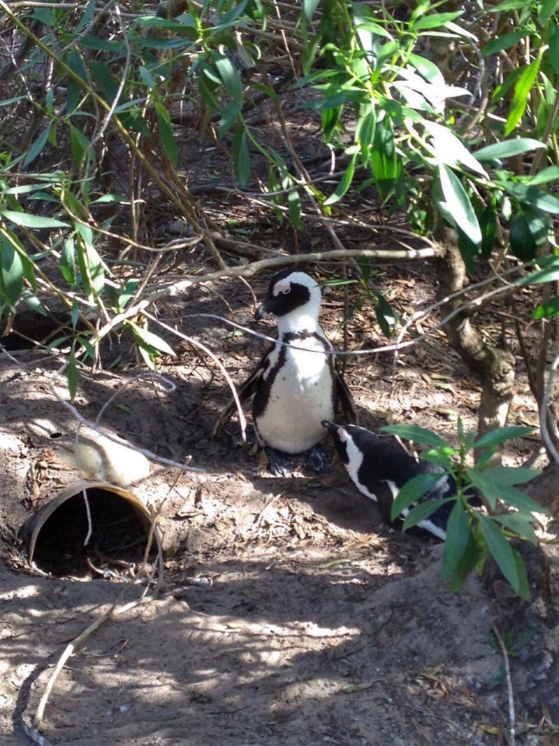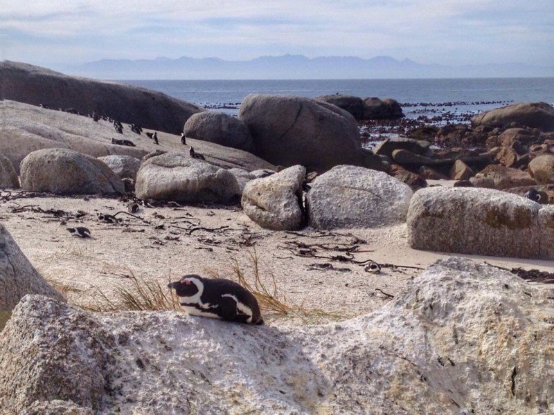 วันที่สามเราขับรถลงทางใต้ Cape Peninsula วิ่งเลียบชายทะเลมุ่งไปทางแหลมกู๊ดโฮป ถนนเส้นสวยสายนี้มีชื่อว่า Chapmans Peak Drive ซึ่งได้ถูกปิดปรับปรุงอยู่หลายปี ก่อนจะเปิดให้รถได้สัญจรตามปกติไม่นานก่อนเราไป จุดหมายของเราอยู่ที่ Boulders beach ชายหาดที่เต็มไปด้วยนกเพนกวิ้นตัวจ้อยสายพันธุ์แอฟริกา เขาทำเป็นเขตอนุรักษ์ไว้ให้นกเพนกวินได้อยู่กันตามธรรมชาติ ไม่ใช่สวนสัตว์แต่อย่างใด ถือเป็นฉากที่ประทับใจและตื่นตาที่สุดของทริปนี้สำหรับเรามนุษย์ผู้คลั่งไคล้ในสัตว์โลกน่ารักทั้งปวง นกเพนกวิ้นตัวมันเล็กๆ เดินต้วมเตี้ยมๆ แล้วอยู่รวมกันเป็นร้อยตัว โอ้ย มันช่างน่าร๊ากกกเกินจะสรรหาคำมาบรรยาย