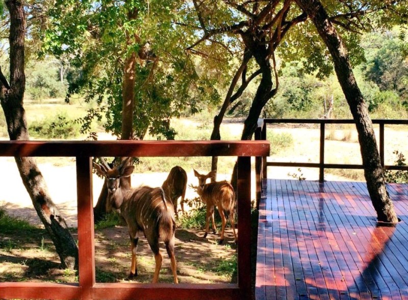ถึงจะพักอยู่ในรีสอร์ทแต่เรากลับได้ใกล้ชิดกับสัตว์ป่าอยู่ตลอดเวลา เพราะวันดีคืนดีฝูงละมั่ง impala ก็ยกขบวนกันเข้ามาเดินเล่นจิบน้ำบริเวณห้องพักหน้าตาเฉย แก๊งค์ลิงบาบูนสุดแสบก็ชอบมานั่งดูเรากินอาหารเช้าคอยจ้องจะคว้าตะกร้าขนมปังยามคนเผลอ บ่ายๆมีฝูงหมูป่า warthog แวะมาเล็มหญ้าที่สนามกลางรีสอร์ท ก็หญ้าที่นี่เขียวสดน่าหม่ำกว่าหญ้าในป่ารกเป็นไหนๆ เห็นทีไรให้นึกขำ แหม.. เข้ามาใช้บริการกันแบบไม่เกรงใจเจ้าของเขาเลยนะพวกแก!