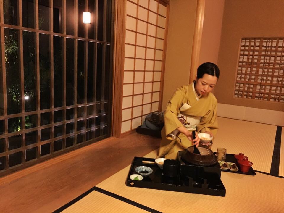 ร้านอาหารมื้อพิเศษสุดของทริปนี้ คือร้าน Kikunoi Honten ที่มีสามดาวจากมิชลินเป็นเครื่องการันตี พูดถึงมิชลินไกด์ ทราบกันไหมคะว่าเกียวโตคือเมืองที่มีร้านอาหารติดดาวมิชลินเยอะที่สุดในโลกเมื่อเทียบสัดส่วนกับจำนวนประชากร บอกแล้วว่าคุณภาพคับแก้วค่ะเมืองนี้ ร้าน Kikunoi Honten คือบ้านเก่าหลังใหญ่ที่จัดแบ่งเป็นห้องๆ ทุกโต๊ะถูกจัดให้อยู่ในห้องส่วนตัวขนาดกว้างที่ปูด้วยเสื่อทาทามิ กลางห้องมีโต๊ะเตี้ยและเบาะรองนั่ง และทุกห้องจะมีคนดูแลประจำห้องซึ่งเป็นหญิงสาวในชุดกิโมโน บรรยากาศเหมือนในหนังญี่ปุ่นสมัยก่อนไม่มีผิด อาหารถูกจัดเป็นคอร์สในคอนเซปท์ฤดูใบไม้ร่วง แน่นอนว่าทางร้านใช้วัตถุดิบที่หาได้ในท้องถิ่น มีปู Matsuba snow crab จากเฮียวโก ไข่ปลา และลูกพลับ เป็นตัวเอก ความอร่อยอยู่ที่ความสดใหม่ของวัตถุดิบ การจัดจานปราณีตสวยงามเข้ากับฤดูกาล บางจานห่อมาเป็นเซ็ตของขวัญ สวยซะจนไม่กล้าแกะกินเลยค่ะ