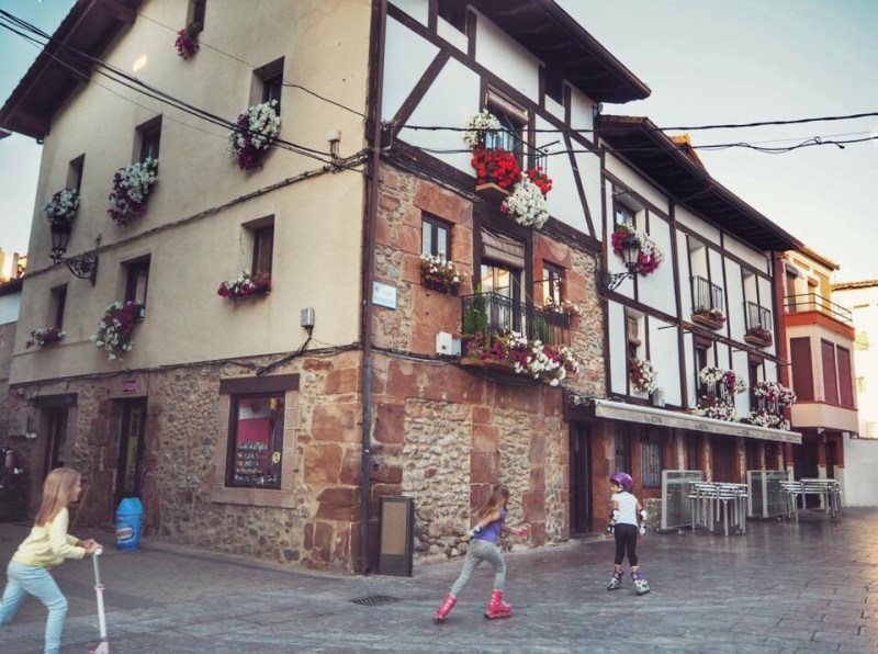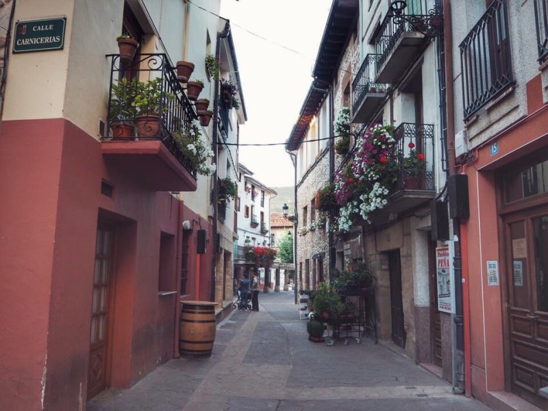 ระหว่างทางมีทั้งทัศนียภาพที่เป็นทุ่งหญ้ากว้างดูคล้ายกับที่อเมริกา บางช่วงก็มีต้นสนสูงชันเรียงรายตลอดสองข้างทางเหมือนกับยุโรปทางแถบสแกนดิเนเวียไม่มีผิด ความสับสนเริ่มมาเยือน “นี่เรากำลังอยู่ที่ไหนกันแน่นะ?” จนขับมาถึงโรงแรมซึ่งตั้งอยู่ในเมืองเล็กๆในแคว้นย่อย Rioja Alta ซึ่งชื่อก็บ่งบอกว่า ”อยู่ที่สูง” (จากคำว่า alta) ด้วยเป็นบริเวณที่ราบสูงใกล้กับภูเขา จากที่สับสนเป็นทุนเดิมคราวนี้กู่ไม่กลับ เพราะงานนี้ภูเขาก็มา! Ezcaray คือเมืองขนาดเล็กที่ล้อมรอบด้วยภูเขา อาคารบ้านช่องทำจากไม้สไตล์แบบบ้านภูเขาที่เราชื่นชอบ ตอนที่เราไปถึงเป็นช่วงเวลาเย็นอากาศกำลังครึ้มฟ้าครึ้มฝน เลยได้เดินเล่นชมเมืองแค่พอหอมปากหอมคอก่อนเวลาอาหารเย็น