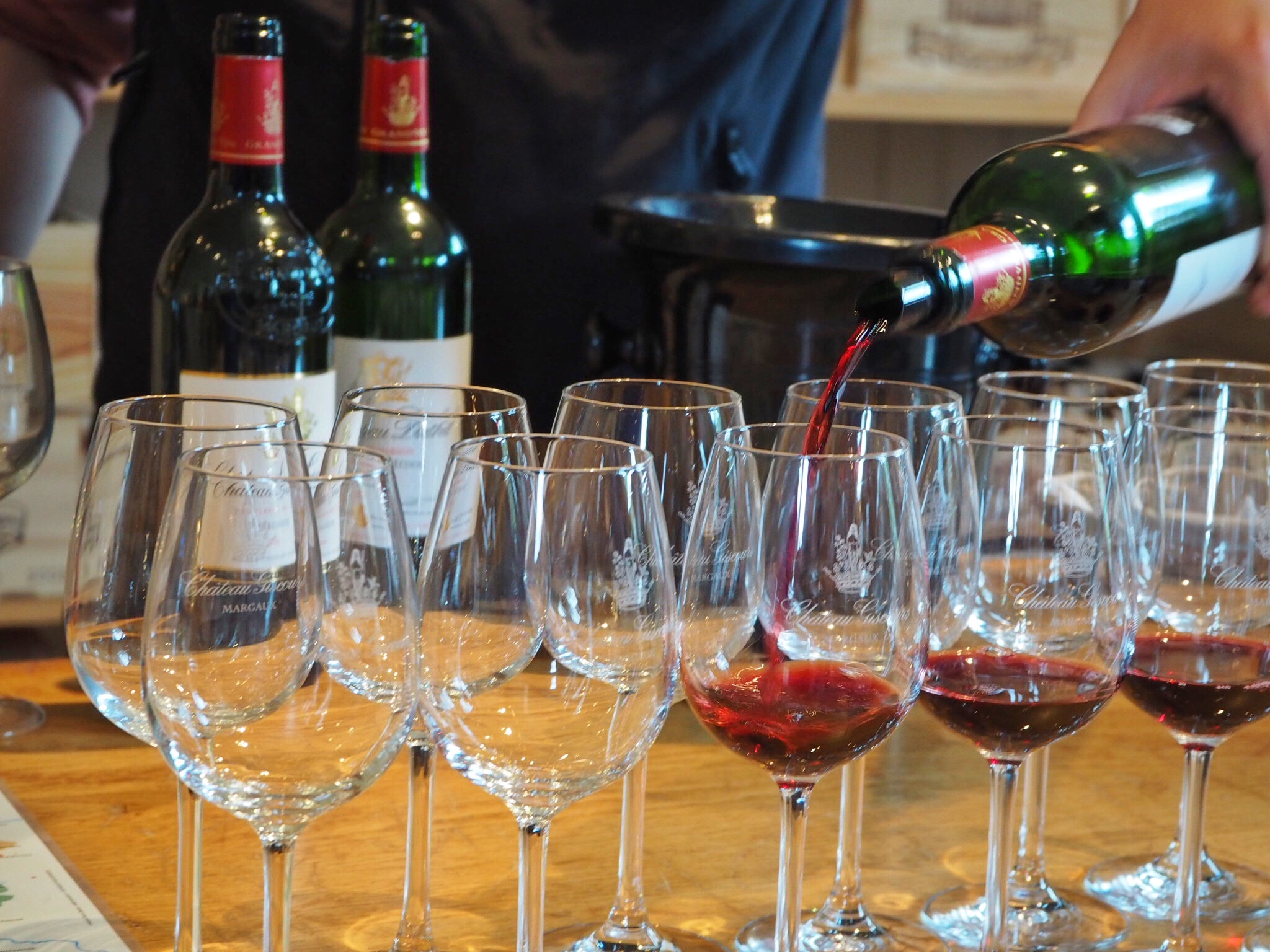 ถึงเวลาภารกิจ wine-tasting ที่รอคอย เราเช่ารถขับขึ้นเหนือมุ่งหน้าสู่แคว้นไวน์เลื่องชื่อ Puillac และ Margaux หรือที่มักจะเรียกกันว่า “left bank” คำว่า bank ในที่นี้ไม่ใช่ธนาคารแต่หมายถึงที่ริมฝั่งแม่น้ำ และ left ก็มาจากตำแหน่งที่ตั้งทางฝั่งซ้ายของแม่น้ำฌีฮอง (Gironde river) นั่นเอง โซนนี้มีปราสาทสวยๆและโรงไวน์ชื่อดังหลายแห่ง แต่ละที่ต้องนัดหมายล่วงหน้าจึงจะเข้าชมได้ ถ้าหวังจะสุ่ม walk-in เข้าไปละก็ ลืมไปได้เลยค่ะ ไวน์แดงมีชื่อของที่นี่ใช้องุ่นพันธุ์ Cabernet Sauvignon เป็นตัวหลัก รสชาติหนักแน่น ฟูลบอดี้ ถูกปากคอไวน์บ้านเรานักแล