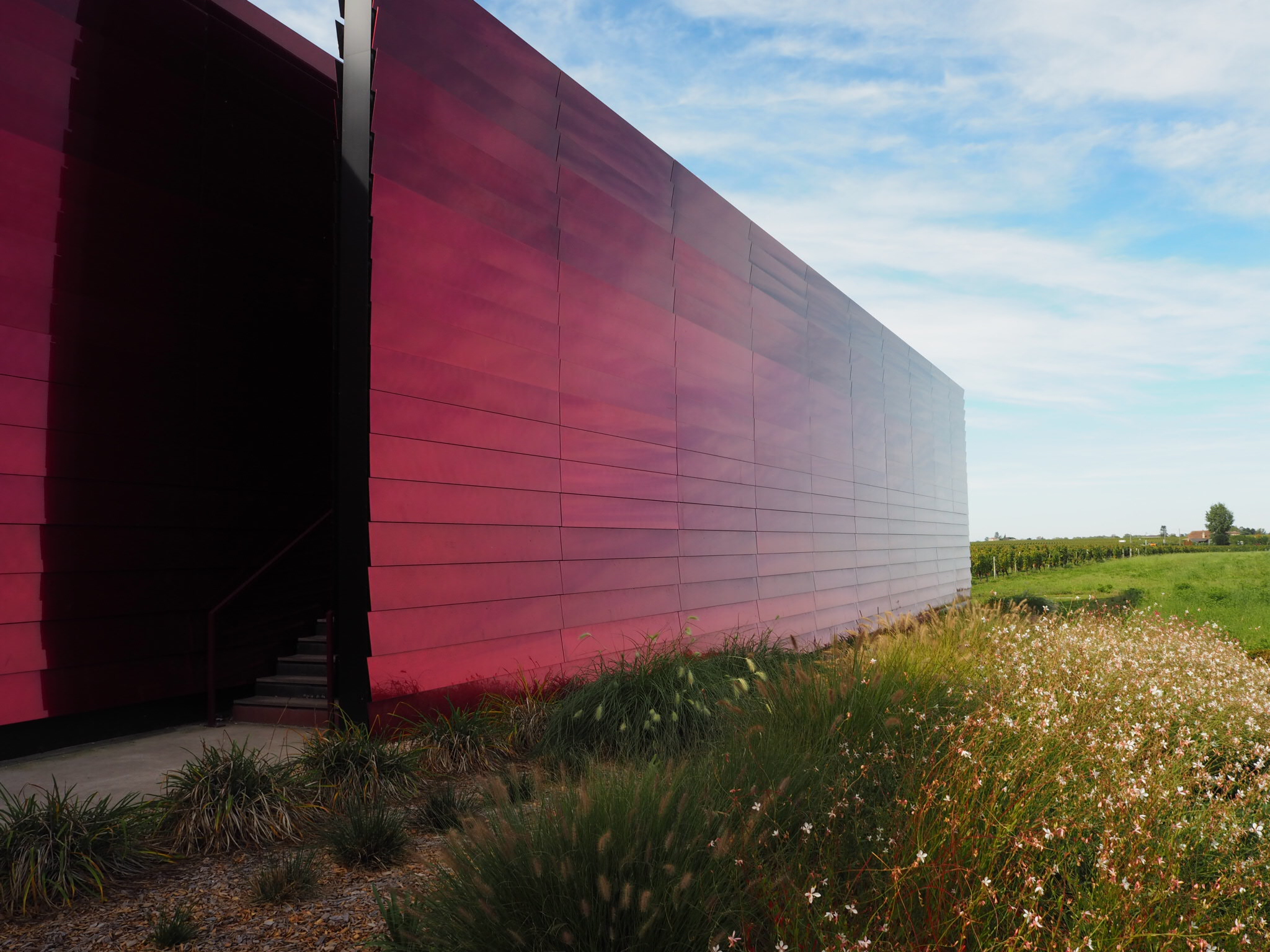 ท่ามกลางไร่องุ่นและวิวชนบท พลันสายตาไปสะดุดกับอาคารกระจกสะท้อนสีแดง รูปทรงล้ำสมัย มองทีแรกคิดว่าเป็นมิวเซียม ที่ไหนได้มันคือร้านอาหารภายใต้คอนเซ็ปต์สุดล้ำ La Terrasse Rouge (the red terrace) ร้านอาหารฟิวชั่นที่มาพร้อมเทอเรซกว้าง มีทะเลหินสีแดงที่ดูเผินๆเหมือนสระว่ายน้ำอยู่กลางลาน สวยแปลกตาไม่เคยเห็นอะไรแบบนี้มาก่อน เพิ่มมูลค่าให้มื้ออาหารได้มากโข